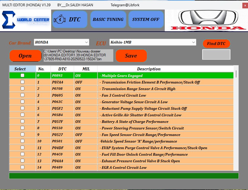 Diagnostic and ECU editing software for Honda vehicles. Supports reading, viewing, and clearing DTCs (Diagnostic Trouble Codes), basic tuning adjustments, and system parameter editing. User-friendly interface with Keihin ECU compatibility. Ideal for workshops and automotive professionals.
